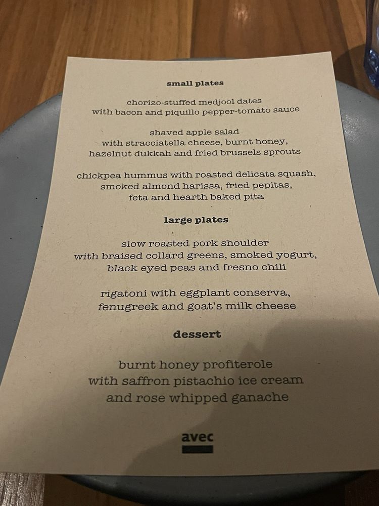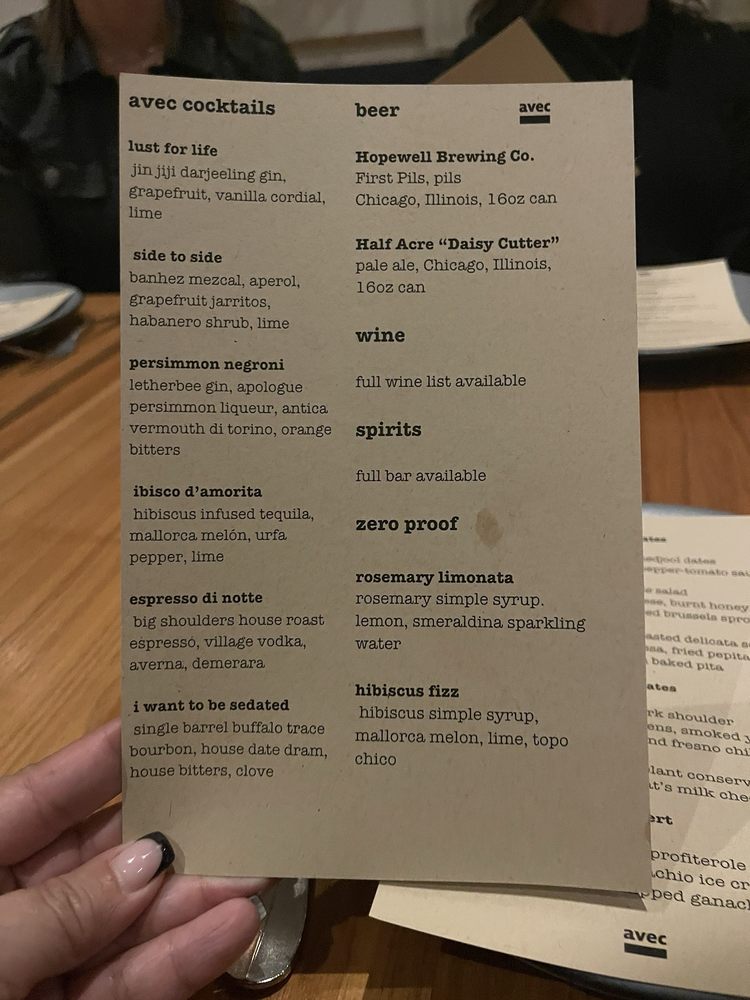 Avec River North, located in Chicago, offers a Mediterranean menu with a range of delicious options. Customers praise the flavorful medjool dates, perfectly balanced pizzas, and great cocktails. The restaurant's simple yet inviting decor creates a classy and upscale atmosphere. While some customers found the portions to be generous, others enjoyed the creative and delicious dishes. With a menu full of options and attentive service, Avec River North promises a memorable dining experience. Whether you're looking for a trendy spot for dinner or dessert, Avec River North is a great choice for groups or a casual night out. Don't miss the chance to try their unique dishes and enjoy the vibrant energy of the restaurant.